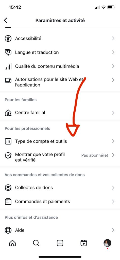 C’est ici que vous transformez votre compte personnel en compte professionnel pour accéder à toutes les fonctionnalités business d’Instagram.