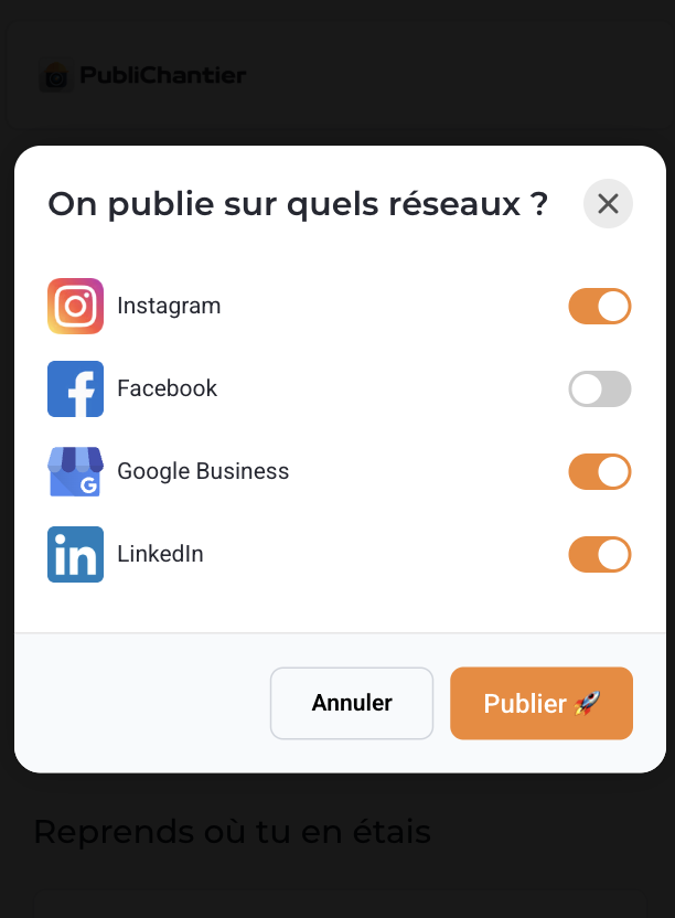 Vous pouvez sélectionner les réseaux sociaux sur lesquels vous souhaitez envoyer votre publication.